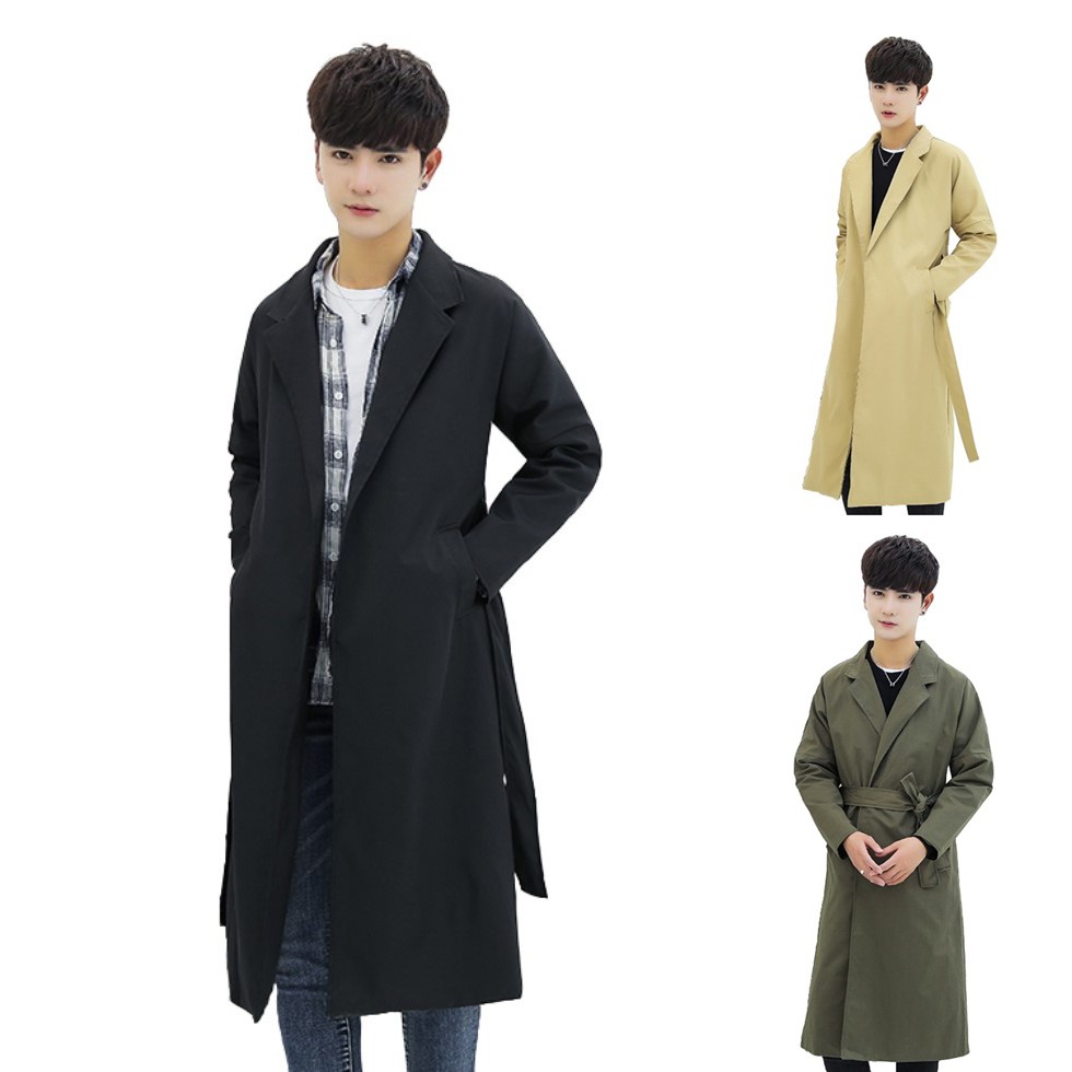 西裝領風衣綁帶外套束腰風衣長版外套男純色長風衣大衣男休閒風衣外套韓版素色大衣韓瘋之子 蝦皮購物